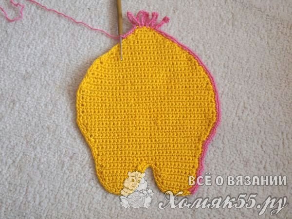 Затем обвязываю всю деталь по контуру столбиками без накида.