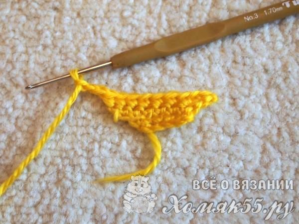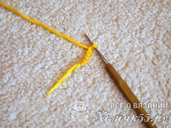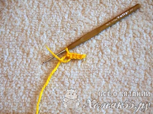 Из желтой пряжи вяжу цепочку из 5 воздушных петель.