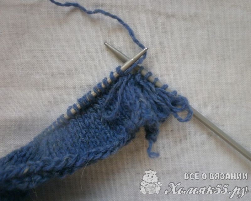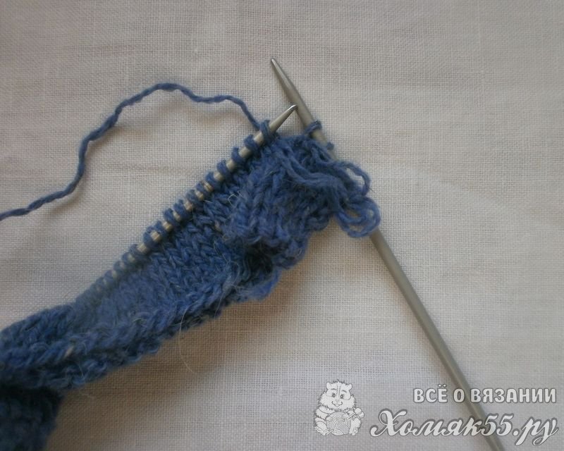 С изнаночной стороны, вяжем тоже изнаночными петлями. Дальше провязываем 8 рядов лицевой гладью. Закрываем петли.