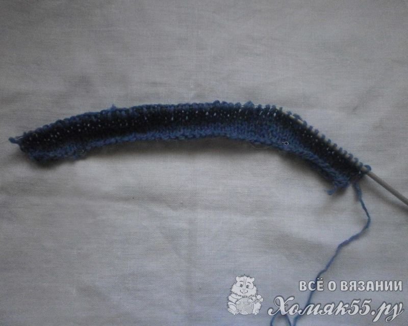 Набираем на спицы 52 петли. Провязываем лицевой гладью 10 рядов, не забывая вязать кромочные петли: первую петлю снимаем, последнюю петлю – провязываем изнаночной.