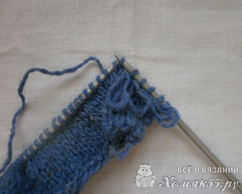 Так провязываем 11 ряд, предпоследняя петля – лицевая петля, последняя – кромочная петля. 12 ряд вяжем по рисунку - изнаночными петлями.