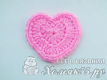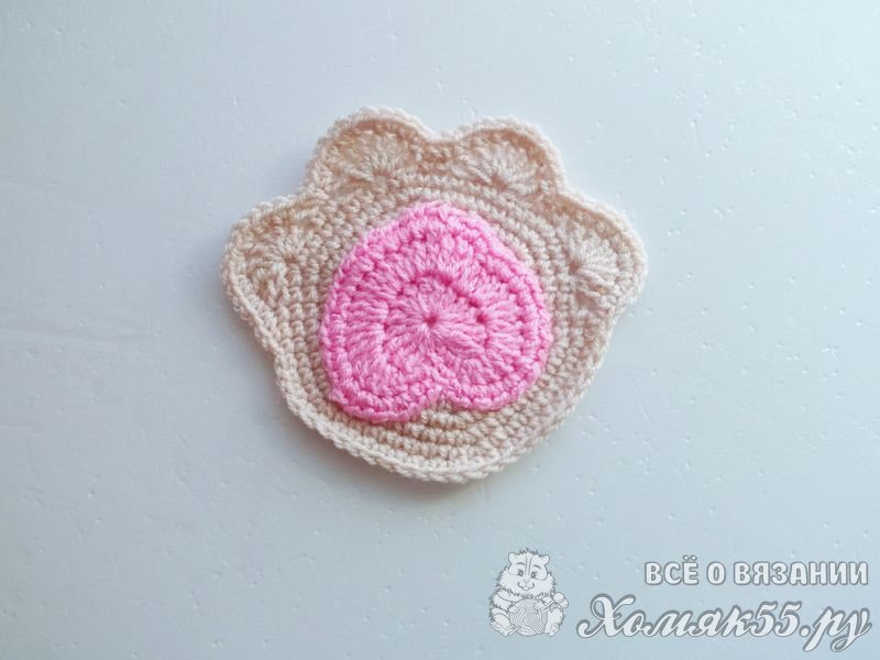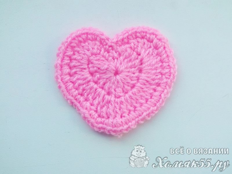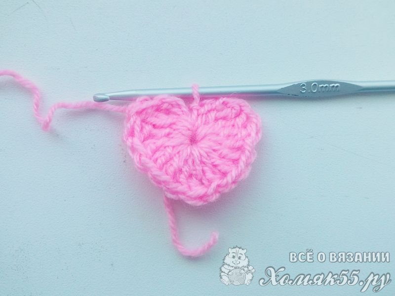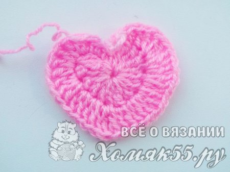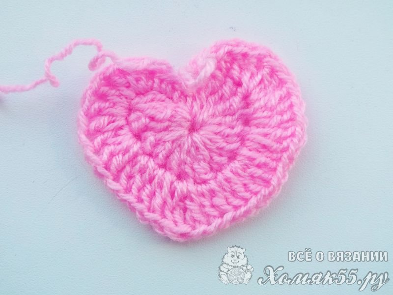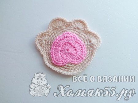 Можно еще 1 рядом обвязать по кругу столбиками без накида. Теперь пришиваем сердечко вершинкой верх на лапку.