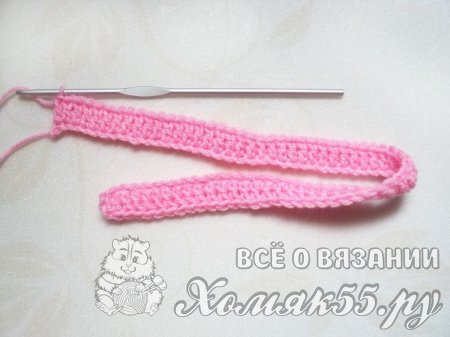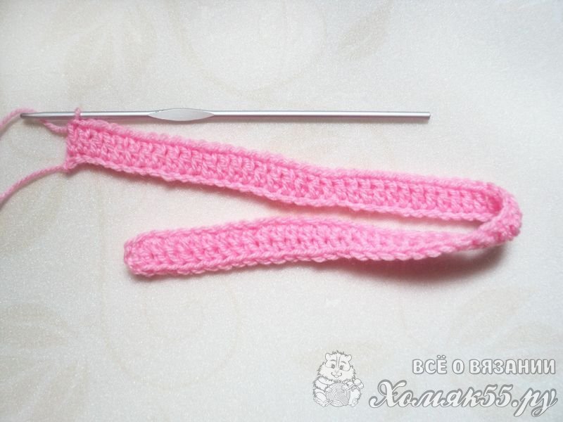 Доходим до последней петельки цепочки, провязываем в нее 1 ССН и разворачиваем крючок. Теперь будем вязать в обратном направлении. Делаем снова 3 петли подъема. Их нам нужно делать в начале каждого ряда. Далее снова вяжем по 1 ССН в каждую петлю предыдущего ряда.