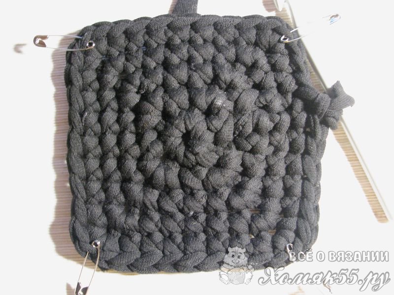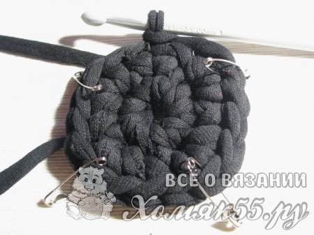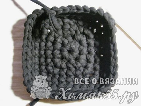 2-й ряд воздушная петля, 1 столбик без накида, сделайте 3 прибавления, далее 1 столбик без накида, опять 3 прибавления и таким образом провяжите весь ряд, закончив соединительной петлей. Те столбики, в которых вы сделали прибавления, отметь булавкой, скрепкой или специальными маркерами. Это буду уголки корзинки.