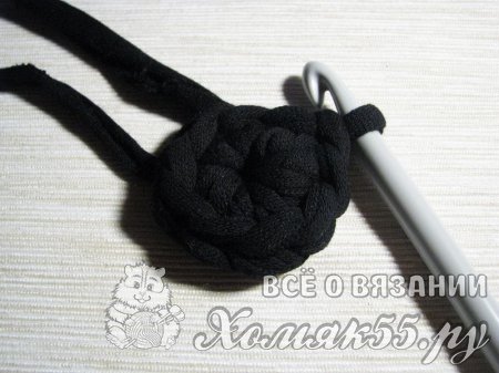 1-й ряд провяжите в кольцо 8 столбиков без накида, начав ряд с воздушной петли.