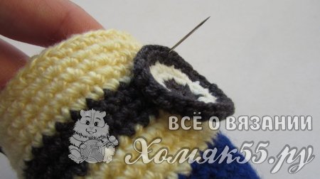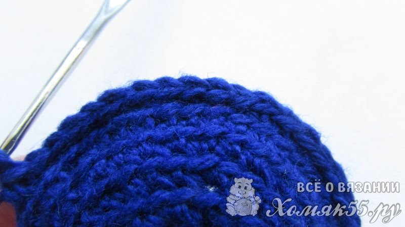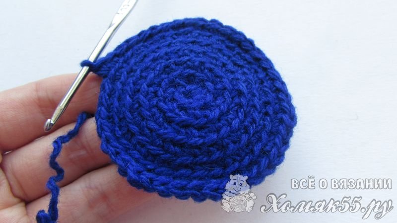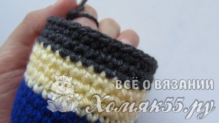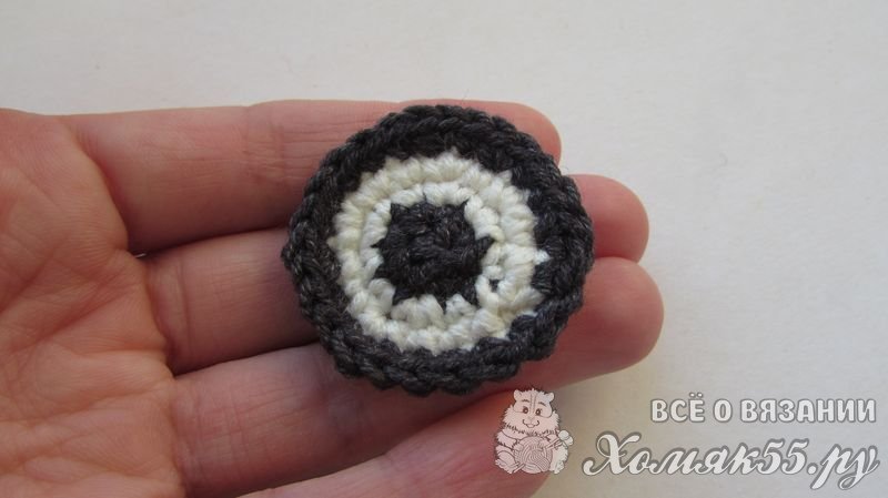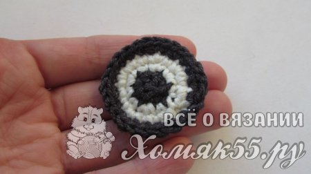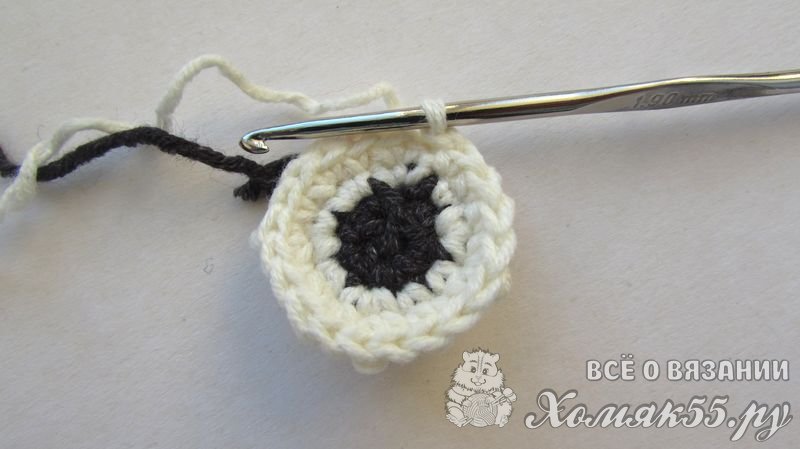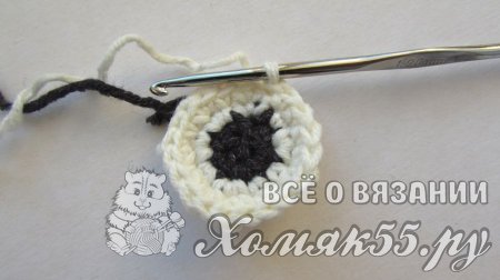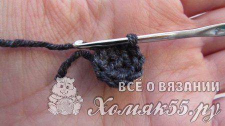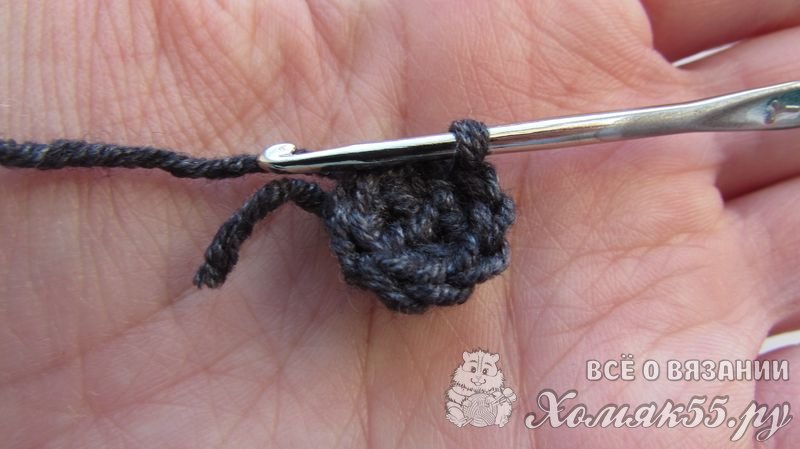 Для этого из черной пряжи делаем кольцо и вяжем 1 ряд столбиков без накида, делая прибавления в каждой петле.