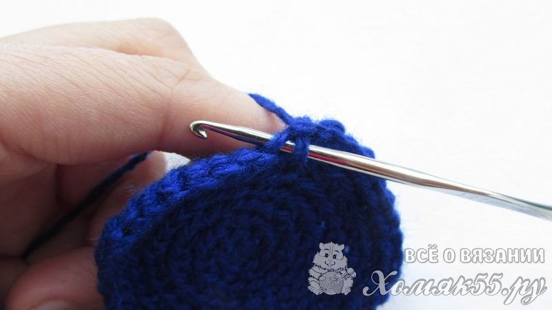 Набираем из синей пряжи 4 воздушные петли и соединяем их в колечко при помощи соединительной петли.