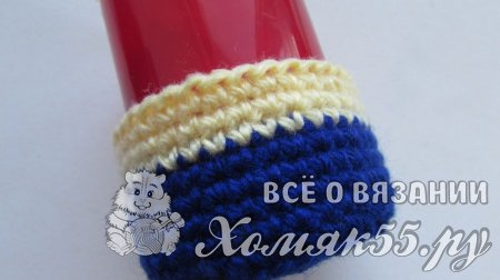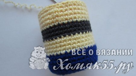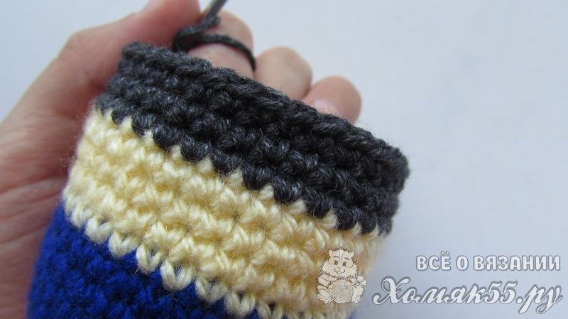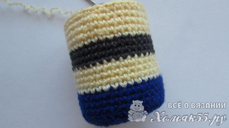 Дальше присоединяем пряжу желтого цвета и вяжем еще 3 ряда столбиков без накида.