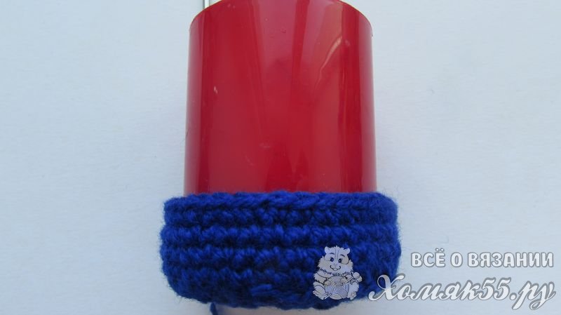 Начиная со второго ряда боковых стенок подсвечника, вяжем столбики без накида, без прибавлений или убавлений. Провязываем 4 ряда.