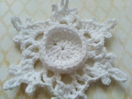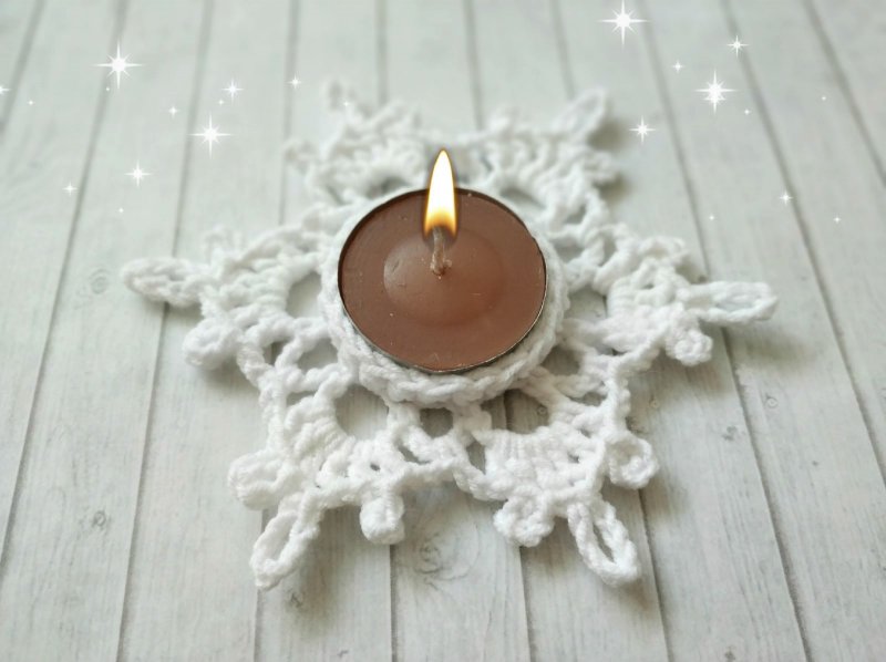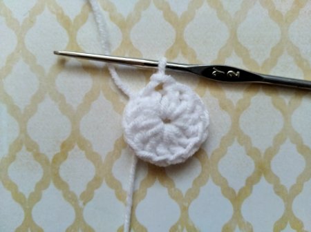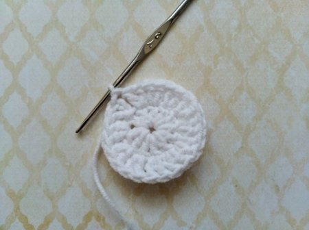 Сначала нам нужно связать донышко, в который будет устанавливаться свечка. Донышко состоит из 2 рядов.