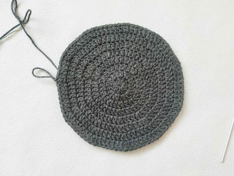Затем прибавки провяжем через каждые 3 петли. И так далее до нужного диаметра донышка корзинки. В данном случае в последнем прибавочном ряду прибавляли в каждую 7 петлю. Получился круг.