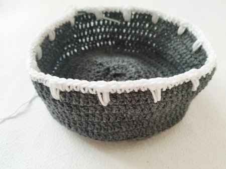 Продолжаем увеличивать корзинку. На этот раз выполняем прибавление уже через каждые 2 петли.