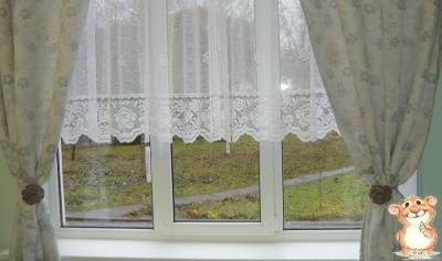 Таких цветов-держателей сделать по числу полотнищ штор. Окно преобразилось – все аккуратно, в порядке.