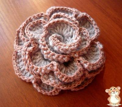 В схеме не указан еще один ряд: контрастная отделка - столбики без накида, провязанные из кромочных петель предыдущего ряда. Принципиального значения этот шаг не имеет, можно оставить цветок без него – деталь получится однотонная.