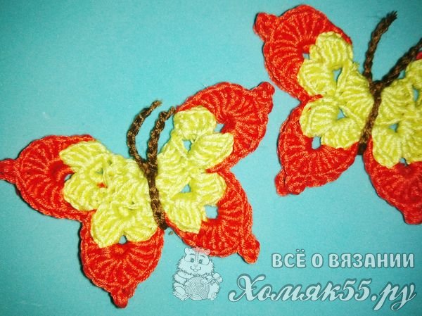 Вяжем точно так же и вторую бабочку.