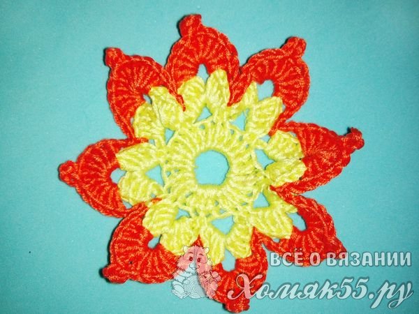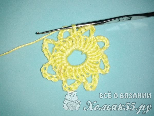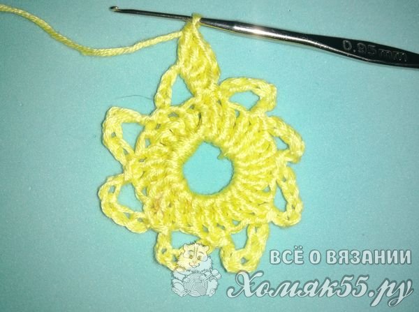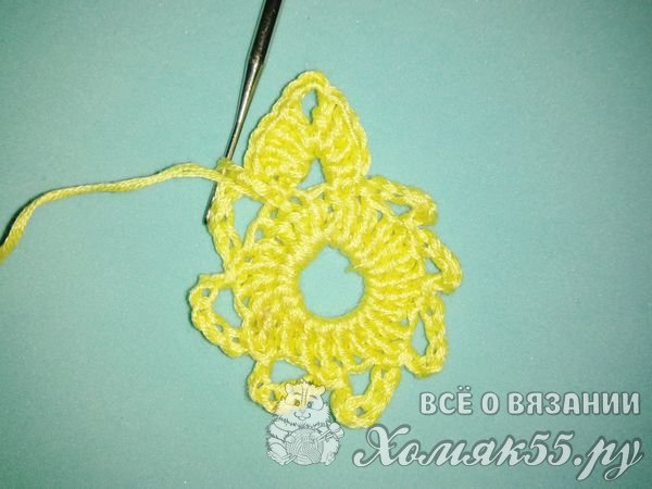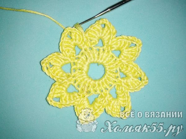Обвязывать так мы будем все наши восемь арок. И у нас получается вот такой цветочек.