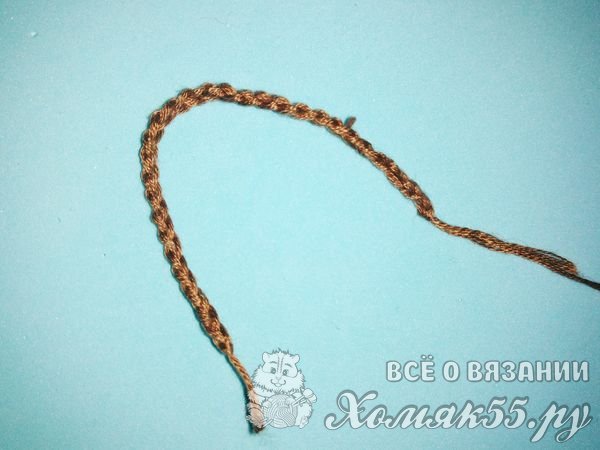 Дальше мы берем коричневые нитки мулине и будем ими вязать туловище и усики. И для этого всего лишь наберем тридцать петелек.