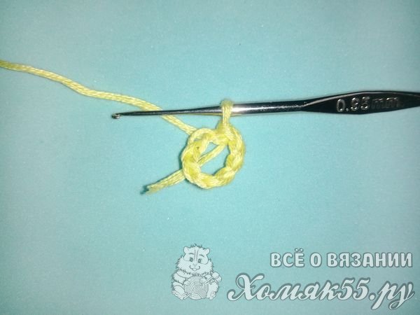 Первое, что нам нужно сделать, это набрать цепочку, которая будет состоять из восьми петель. Мы эту цепочку замкнем в кольцо.