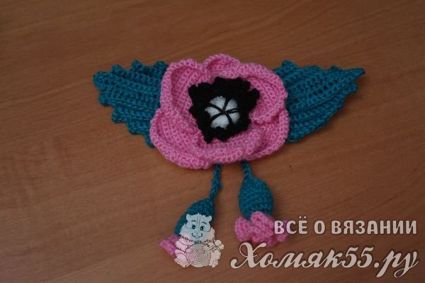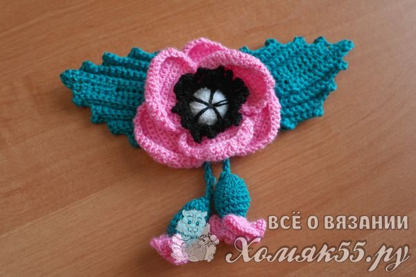 Как вязать украшения крючком. Брошь «Розовый мак»
