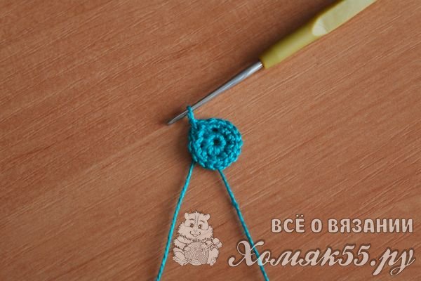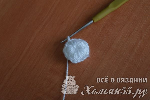 Теперь вяжем в каждую петлю основания по 2 столбика без накида, чтобы расширить окружность.