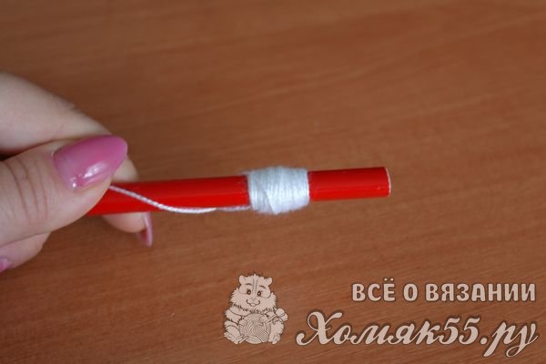 Аккуратно снимает витки с карандаша и очень плотно обвязываем их по кругу столбиками без накида.