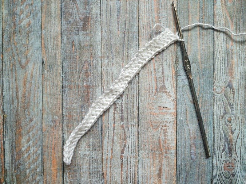 Для школьной формы лучше использовать пряжу белого цвета. Набираем воздушную цепочку по обхвату запястья плюс 1 см. Количество петелек должно быть кратно 4 и плюс 1 петелька для симметрии. Провязываем по всей длине цепочки столбики с 1 накидом. Первый ряд манжеты связан.