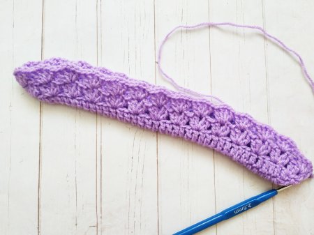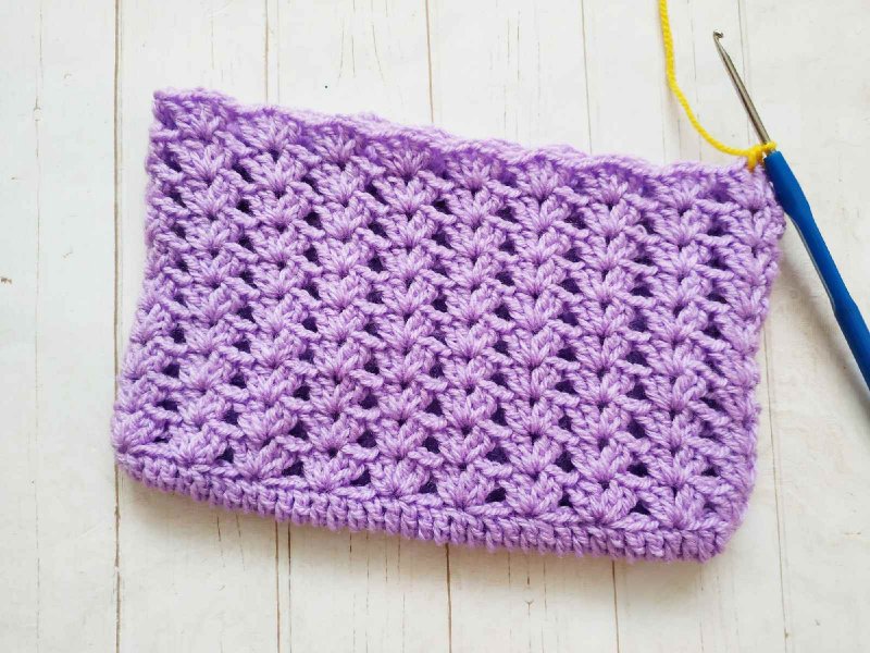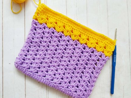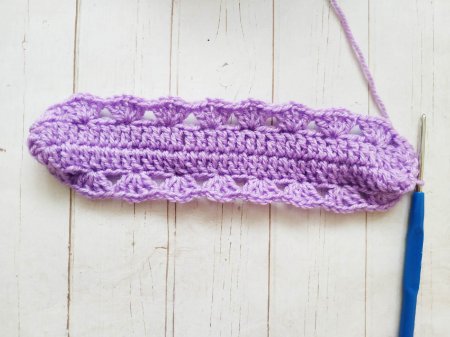Дальше свяжем еще 2 ряда основным узором. А еще 2 ряда обычными сбн. В последнем ряду тоже провяжем сбн, но в уголках сделаем убавление.