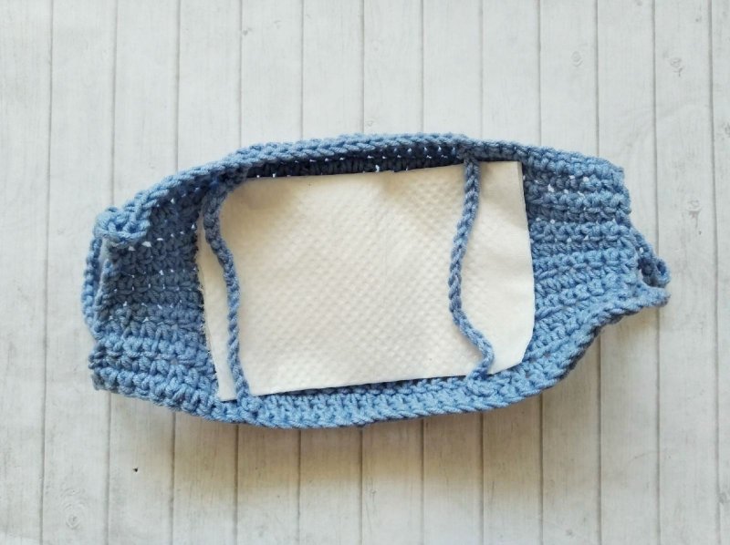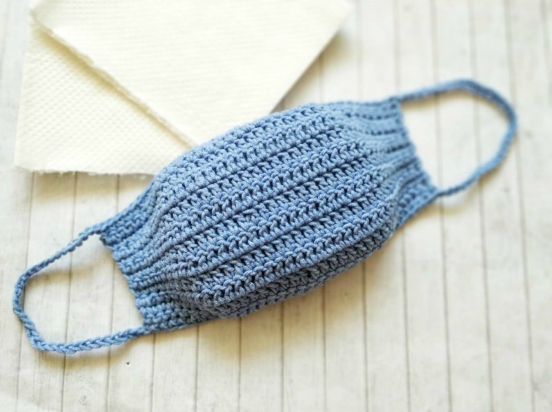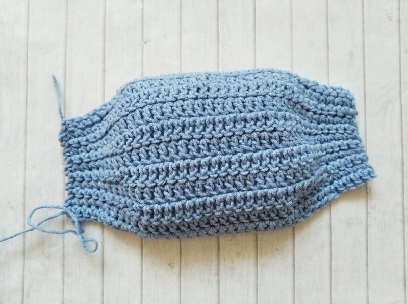 Маска почти готова. У нее есть основа, закрывающая нос и рот, и петельки за уши, чтобы маска держалась на лице.