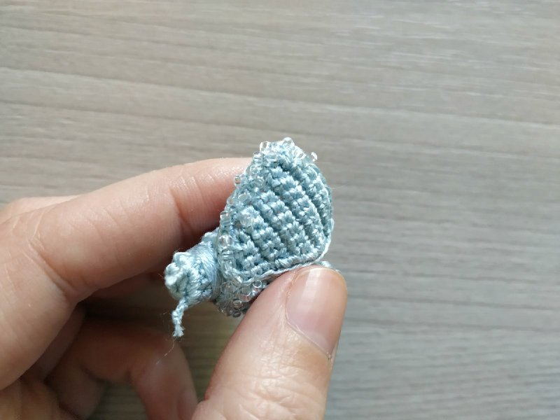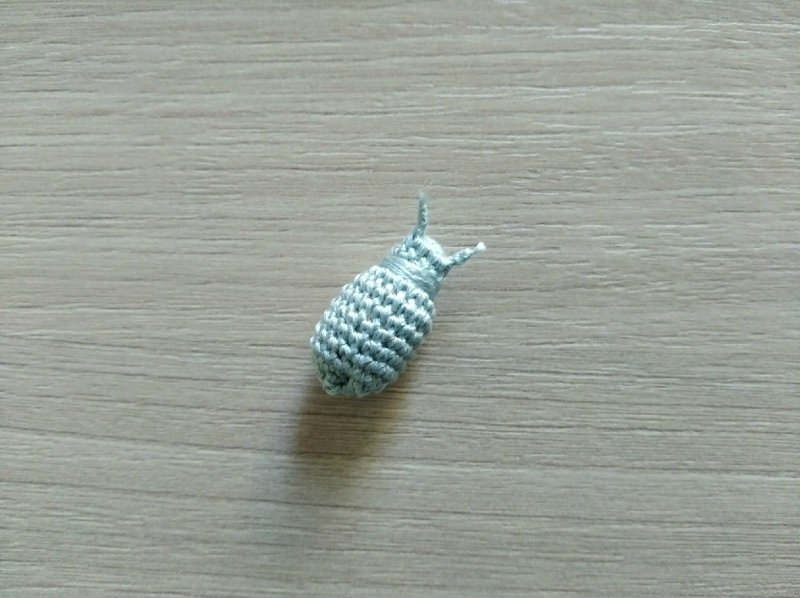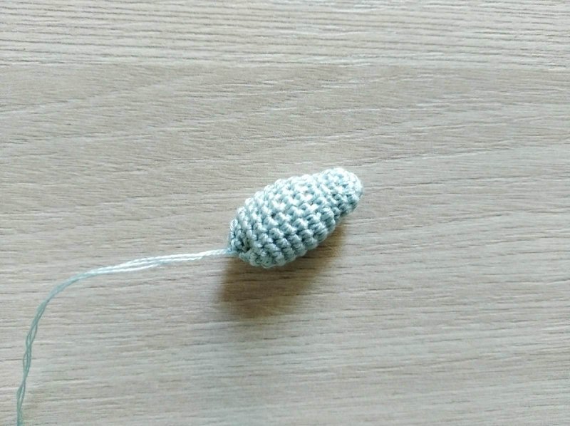 Делаем убавку через петлю. И в следующем ряду вяжем по 2 Ст БН вместе. И не забываем наполнять деталь синтепоном.