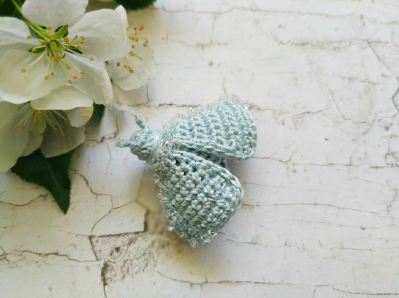 Нежная брошь «Мотылек» крючком готова!