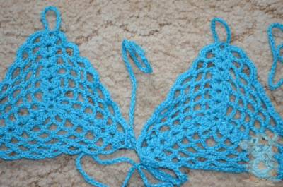 Одиннадцатый шаг. Примерим получившееся украшение на ногу и если все в порядке точно по такому же принципу свяжем второе украшение.