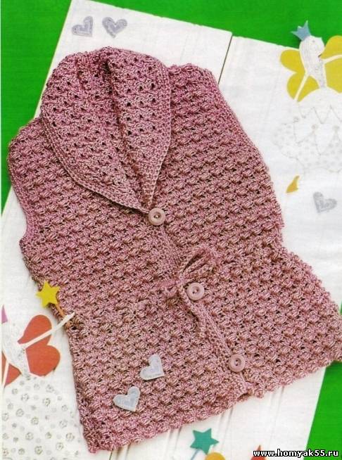 Эта ажурная детская безрукавка обязательно понравиться вашему ребенку. Безрукавка выполнена крючком затейливым узором из теплой шерстяной пряжи. Размер: 1-1,5 года.