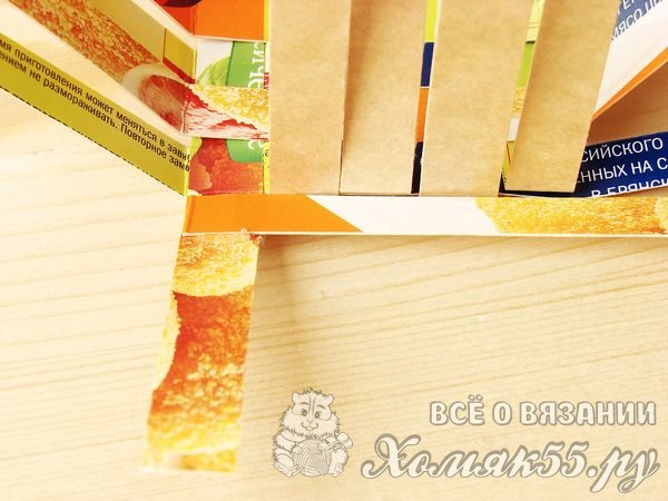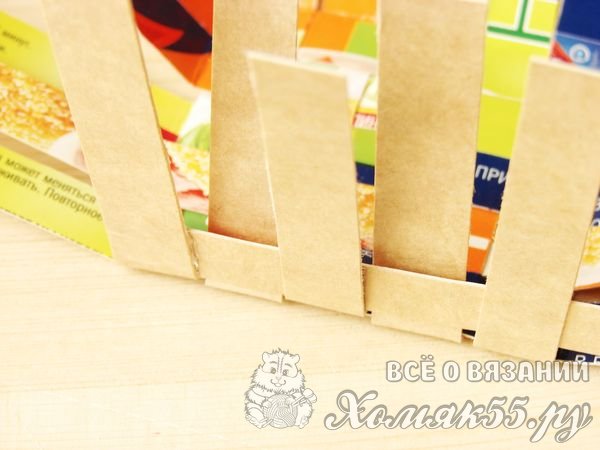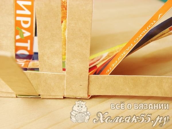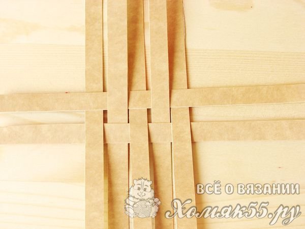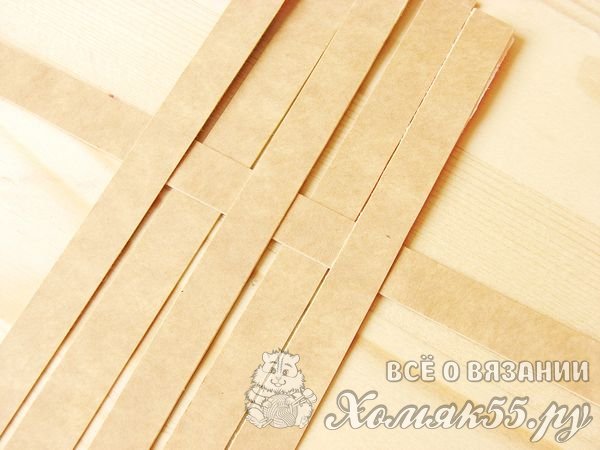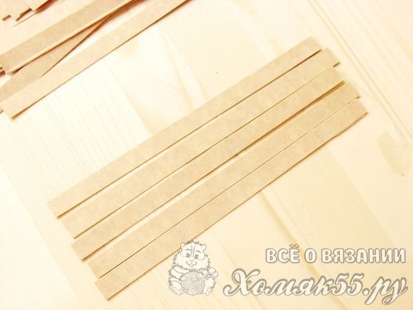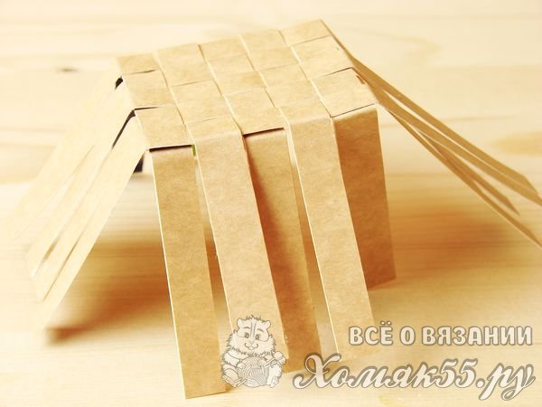 Затем приготовим еще пять таких полосок. Первую деталь располагаем между полосками первого яруса.