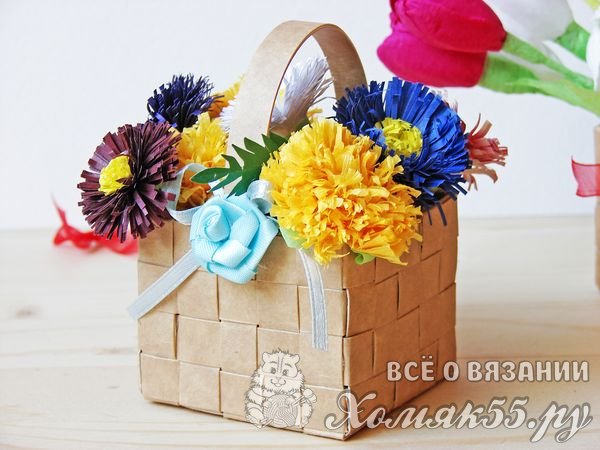 Сегодня мы покажем вам, как сделать декоративную корзинку из картона. Такая поделка может стать отличным декором интерьера или оригинальным украшением стола! Дополнить корзинку вы можете небольшим букетиком цветов, также ее можно использовать в качестве корзинки для пасхальных яиц.