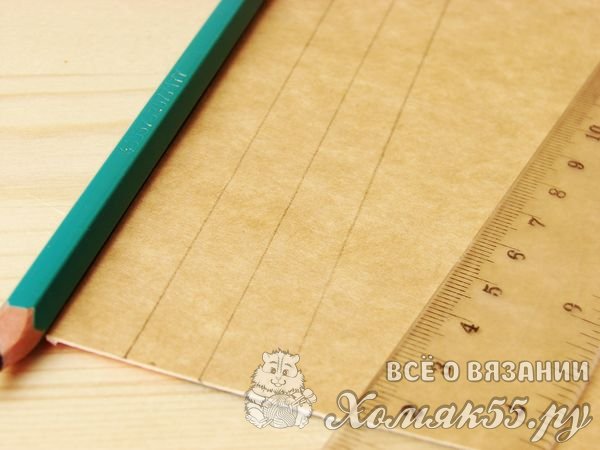 Далее начинаем размечать заготовку. Проводим по всей ее длине вот такие линии.
