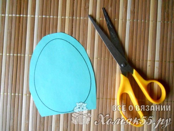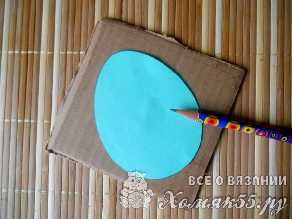 Чистой стороной (сторона на которой нет контура) прикладываем яичко к картону и обводим карандашом. Обводить яичко стоит также на черновой стороне картона. Вырезаем