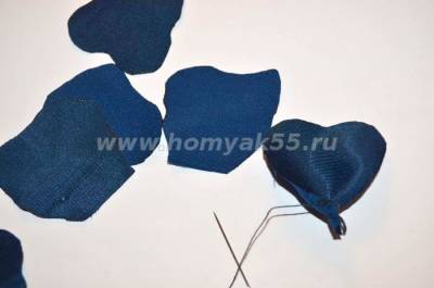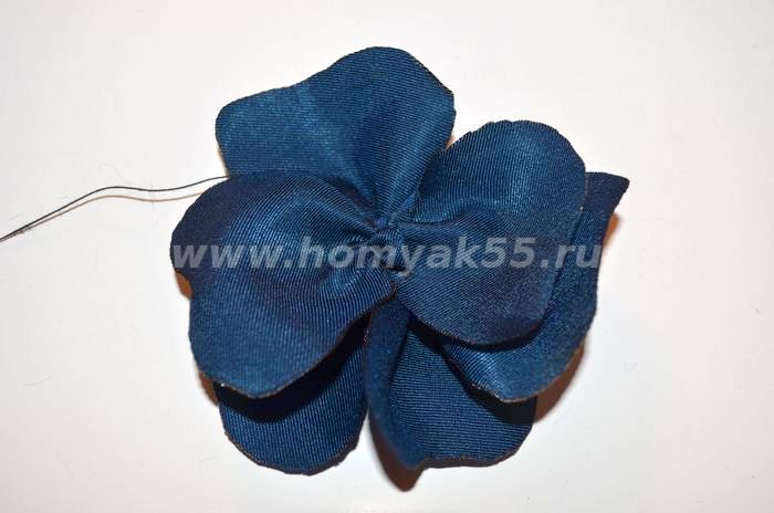 4.Кпервому лепестку пришиваем присобранный второй, также как это показано на фото ниже.