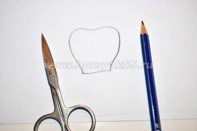 1. Главным объектом нашего украшения являются крупные бутоны роз, именно из них и начнем создавать аксессуар. Для начала, нам нужно вырезать детали лепестков, чтобы они были одинаковыми, возьмем лист бумаги и простым карандашом выполним на нем эскиз того самого лепестка. Рисунок вырежем по контуру и получим нужный нам шаблон-выкройку.