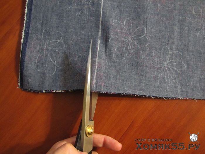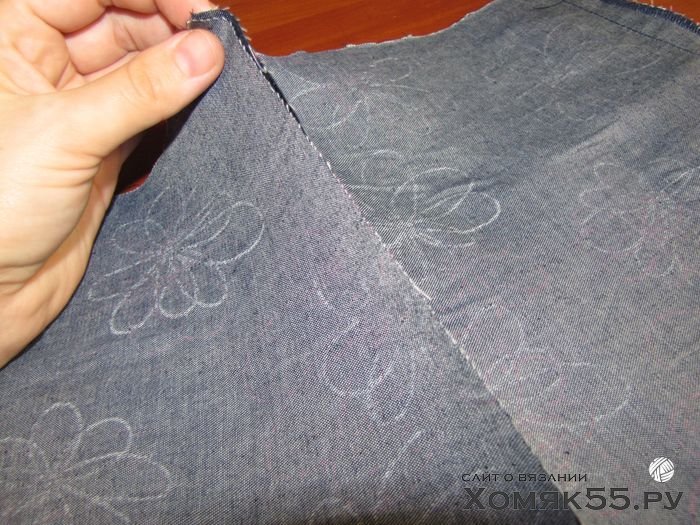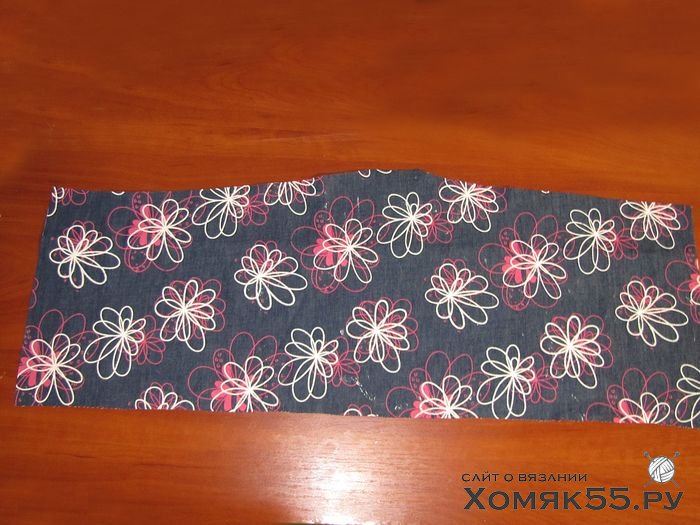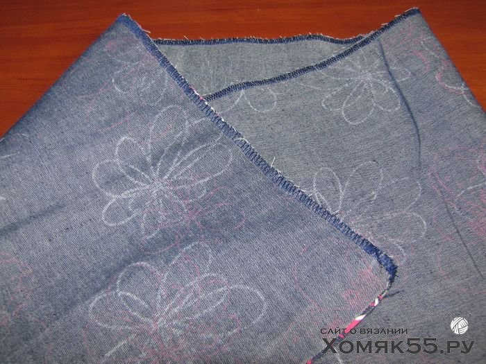 Прежде всего сложим ткань пополам, а затем вдоль пополам (изнанкой вверх).