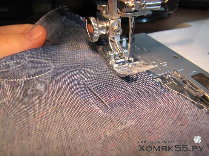 Затем проложим на машинке "зигзагом" шаговый шов. И прямую строчку.