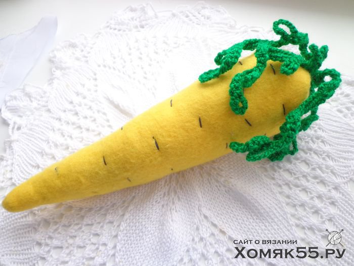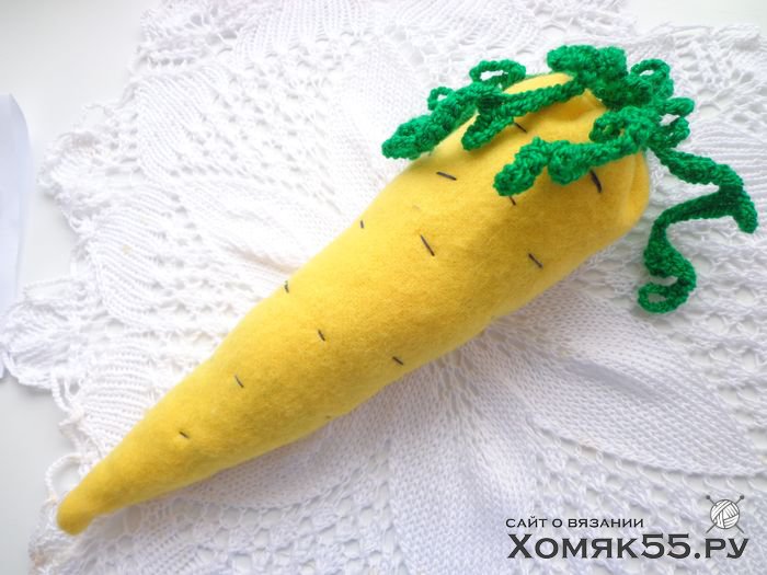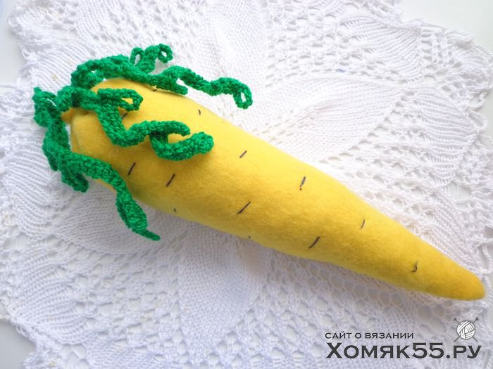 Подобная морковка прекрасно подойдет для детского сада как мягкая игрушка или в качестве овоща к празднику урожая.