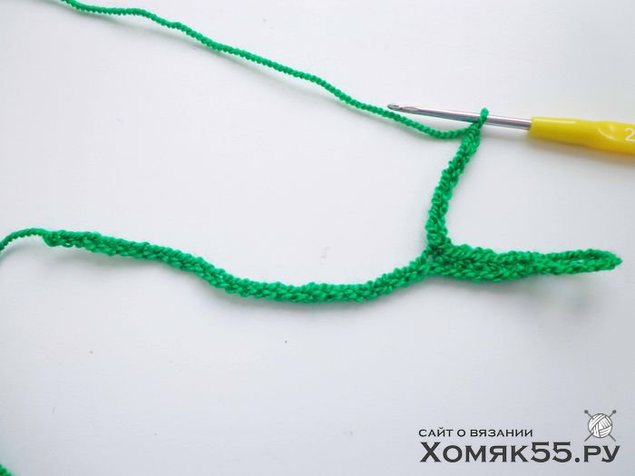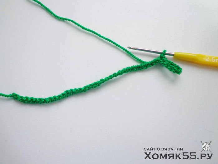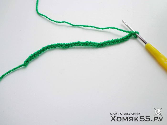 Подхватывая петли цепочки, провяжите 5 столбиков без накида.