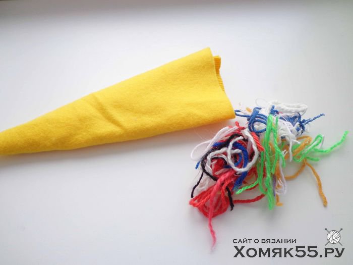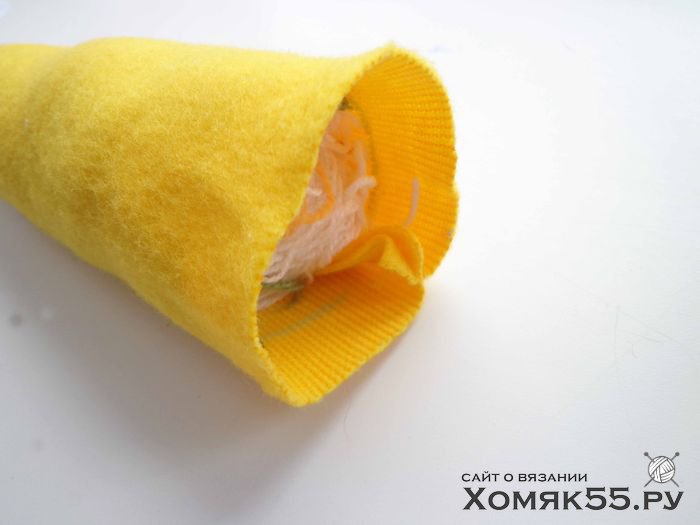 Начинаем наполнять. В качестве наполнителя берите либо холлофайбер, либо остатки пряжи. В крайнем случае, заполните основу морковки ватой.