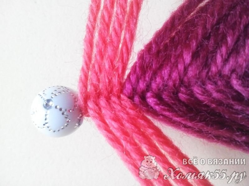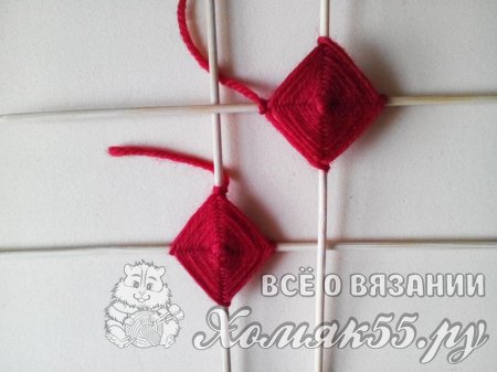 Теперь у нас получился квадрат. Его нужно закрепить. Отрезаем нить и делаем узел.