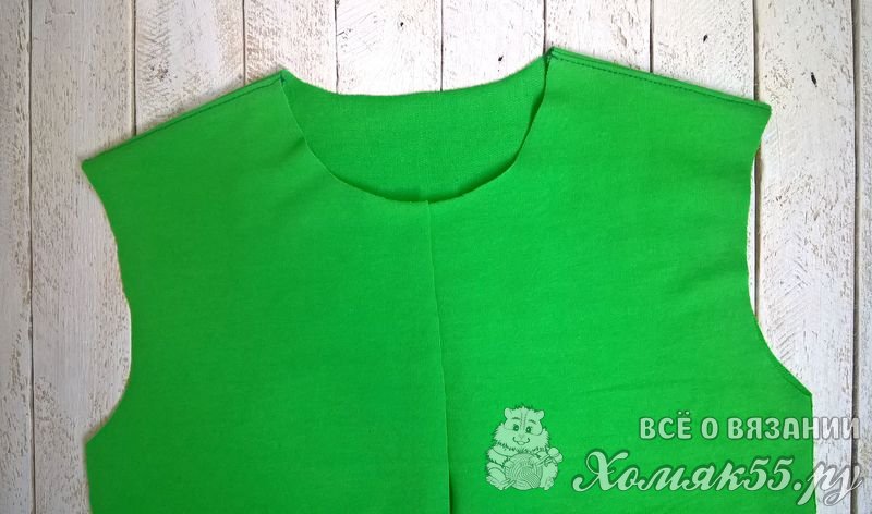 10. По лицевой стороне отстрочите прямой строчкой припуски плечевых швов, завернув их в сторону полочек.