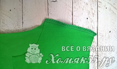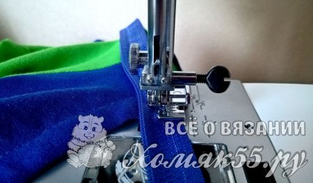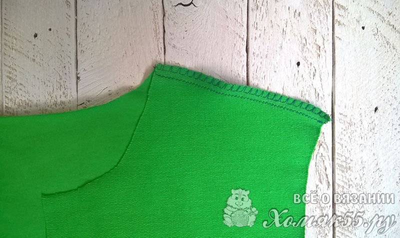 17. Срезы обработайте оверлочным швом, а по лицевой стороне отстрочите прямым швом, подняв припуски вверх, в сторону кофты.