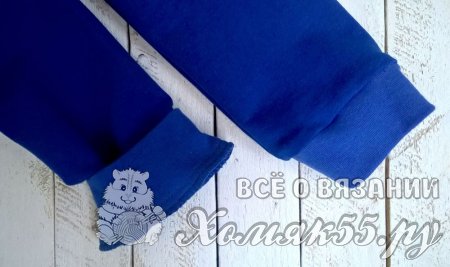 - Стрейч-рибана синего цвета для манжет и нижней планки кофты – 10 см