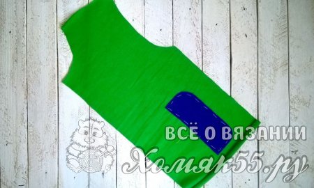 9. Полочки с карманами готовы, поэтому можно сшить их с деталью спинки. Положите полочки на спинку лицом к лицу, подравняв их по плечевым линиям. Эти линии прострочите трикотажным швом, а затем края обработайте оверлочной строчкой.