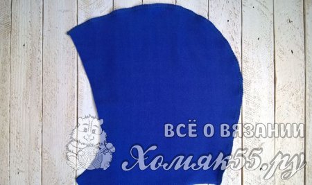 3. Сложите вместе две детали капюшона так, чтобы их лицевые стороны оказались внутри. Стачайте на машинке внешний изогнутый край капюшона, используя шов для трикотажа. Затем края этого шва обработайте оверлочным швом, предварительно сменив лапку на оверлочную.