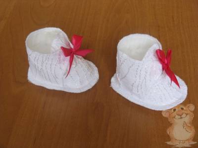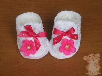 В таком виде пинетки уже можно одевать ребенку. Но для того, чтобы сделать их внешний вид более привлекательным, предлагаю вам выполнить следующий шаг работ - декорирование.
